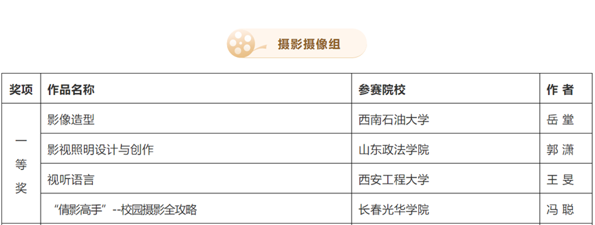 5月28日,第四届全国数字创意教学技能大赛揭晓,艺术学院广播电视编导专业3名教师获奖,岳堂老师获摄影摄像组一等奖,李晨老师获影视艺术组三等奖,江霄老师获影视艺术组优秀奖二项。