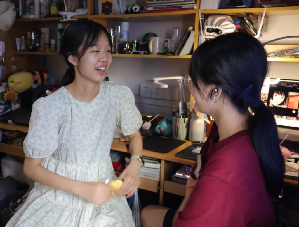 2023级俄语专业的叶昱彤同学从家乡带来特产,跟室友分享。“好久没见到室友们了,很想念大家,也很想念石大!”