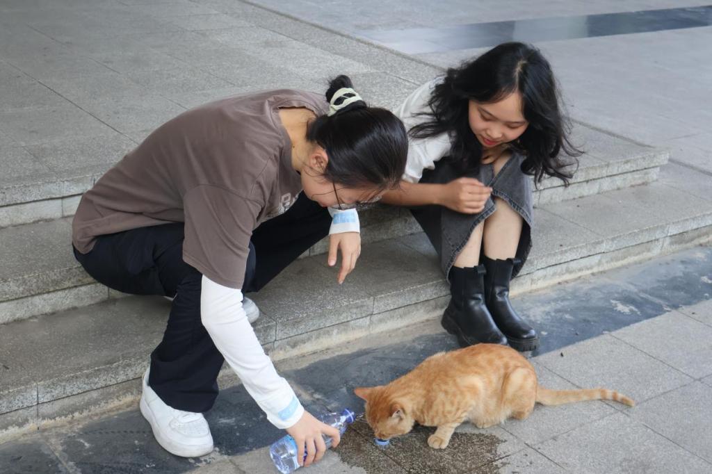 2023级俄语专业的陈慧馨很喜欢小动物,开学第一天下课后,陈慧馨就迫不及待地去看望自己的老朋友“大橘”。“石大的环境很好,有很多可爱的小动物!”