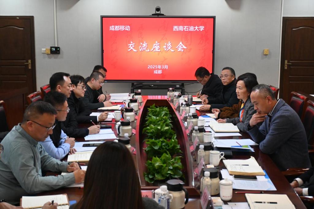 中国移动通信集团四川有限公司成都分公司副总经理陈渊及市场经营部、集团客户部、新都分公司等部门负责人,学校党政办、计财处、实设处、国资处、网信中心、后勤部相关负责人参加了座谈。
