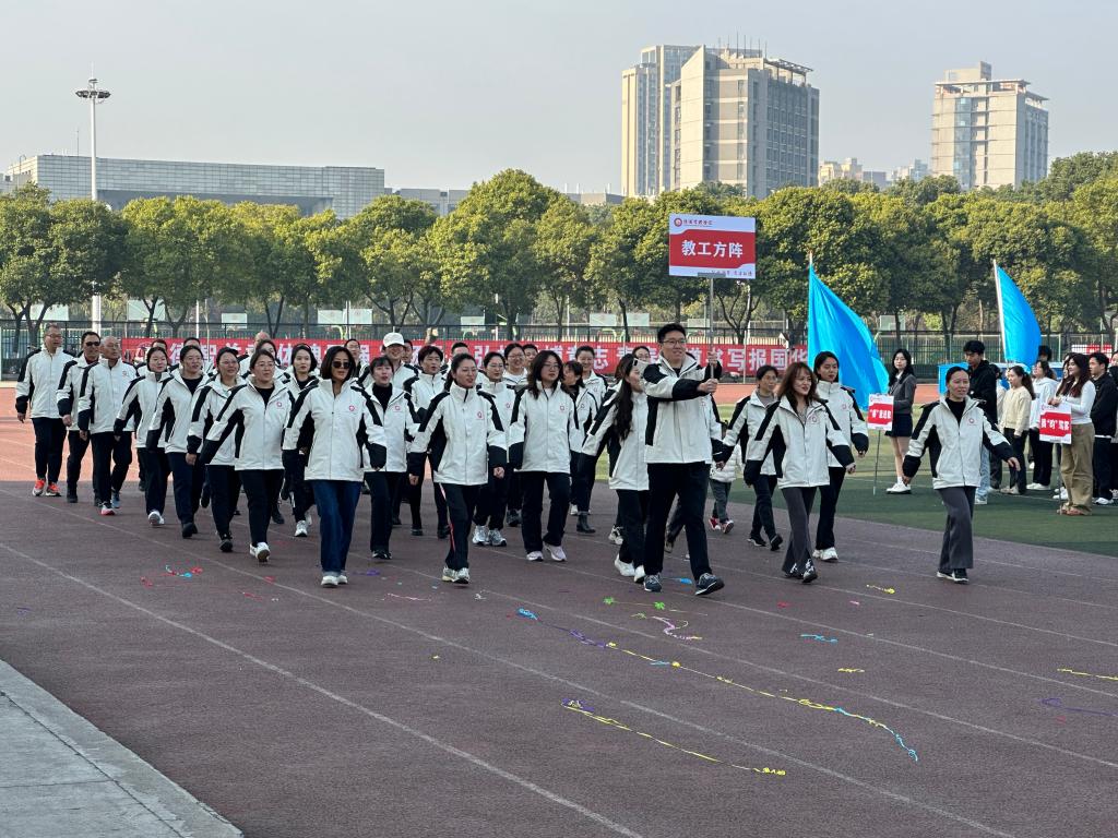 教工组比赛主要设置集体娱乐项目:跳绳30米迎面接力、同心鼓、你抛我接、一圈到底、转圈夹球20米接力,各教教研室展现出良好的团队协作精神与竞技风采。