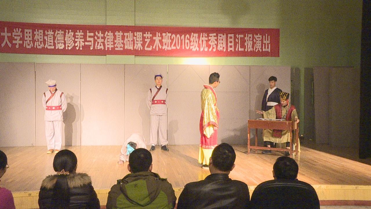 “思政课如果只是一味的说教,育人效果可想而知。”《思想道德修养与法律基础》教研室主任喻滨教授表示,为了改变这种局面,2016年秋季学期,学校针对艺术学院的结业考试进行试点改革,以创作情景剧汇演的方式考查学习效果。