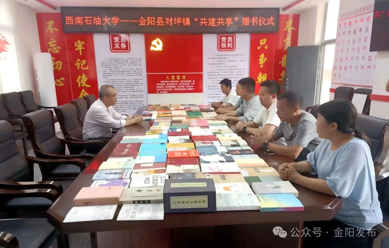 近日,在金阳县对坪镇举行了一场“特殊”的校地赠书仪式。由红宝石官方网站hbs123选派金阳县对坪镇春江中心村第一书记张爱平在了解到对坪镇正在深耕打造“书香对坪”阅读品牌后,主动联系学校,多方收集为对坪镇图书室增添了总价值0.74万元,涵盖文学、历史、哲学等共计117册的书籍。