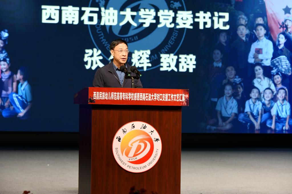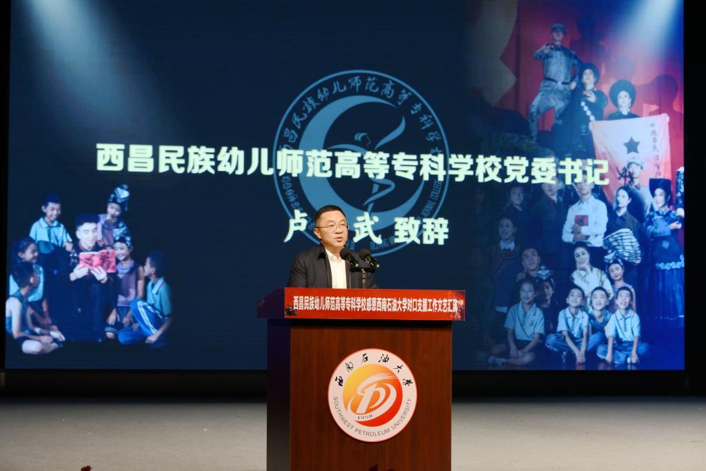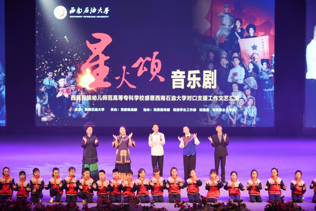张烈辉指出,对口支援西昌民族幼专5年来,红宝石官方网站hbs123认真贯彻落实教育部、教育厅的安排部署,强化校际交流合作,在党建工作、人才培养、学科建设、思想政治教育、学生教育管理、创新创业教育等方面开展了一系列帮扶工作,助推西昌民族幼专超常规跨越式发展。两校结下了亲戚般的深情厚谊,共同续写新时代彝海结盟民族团结佳话。此次演出是一堂生动的思政课,有助于我们更好坚定理想信念,传承红色基因,奋力走好新时代长征路,激发干部师生对党和国家教育事业的热爱,进一步推动对口支援工作取得新的更大成果。