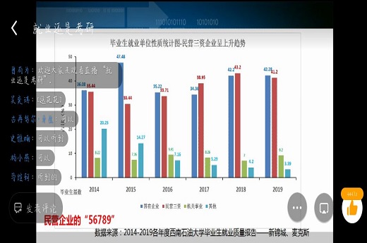 曾有为从就业政策、就业形势、考研形势、如何决策四个方面展开论述。首先,曾有为以就业政策为出发点,介绍了相关就业方式与深造途径,如六保六稳政策、教育部二四三五六行动、大学生应征入伍政策等,希望同学们能抓住机会,随时关注国家政策变化,预先做好未来规划。在新冠疫情的冲突下,经济下行,曾有为先分析了GDP增速与新增就业人口关系、第三产业吸纳就业人口占比等数据,指出新形势下,需求与就业之间的冲突逐渐突出,同学们更要衡外力、量己行,进行准确的自我定位。