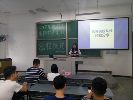 为协助实践队高效、安全的完成暑期社会实践,6月21日下午,材料院于明德楼A205举办暑期社会实践出征仪式。此次材料院暑期社会实践人员涵盖全校各院同学共计270余人,组建了三十一支队伍,实践地覆盖全国各地区。材料院团委书记田合超、团委副书记祝静思、各实践队队长及成员代表参加此次出征仪式。